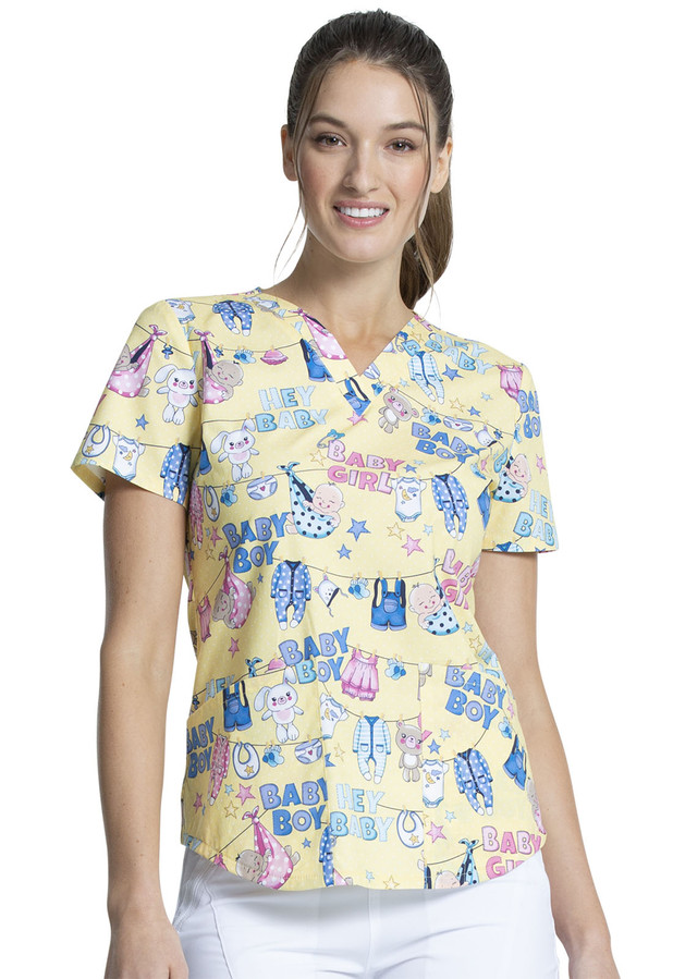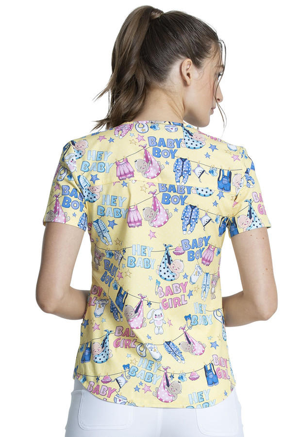Dámska blúza značky Cherokee má milú potlač bäbätiak, detského oblečenia a hviezdičiek. Veľmi oblúbené motívy pre pôrodnice a detské oddelenia. Ponúkame vo veľkostiach od XS – 3XL. Strih je vhodný pre všetky typy postáv. Poteší Vás kvalitný materiál s prímesou elastanu, ktorý Vám zabezpečí pohodlie po celú pracovnú zmenu.