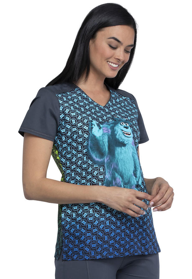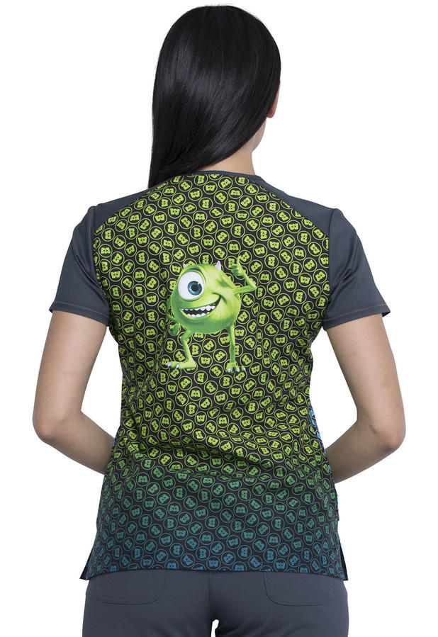 Táto zdravotnícka blúza s potlačou značky CHEROKEE má veselú potlač hlavných postavičiek z dětského filmu Príšerky s.r.o. Je zaujímavá ľahkým ombree zafarbením, z prednej strany do modra s hlavnou postavou Sullivena, na zadnej strane ladenej do zelena je postava Mike Wazowskeho. Ako jedna z mála v našej ponuke, má blúza bočné vrecká na zips